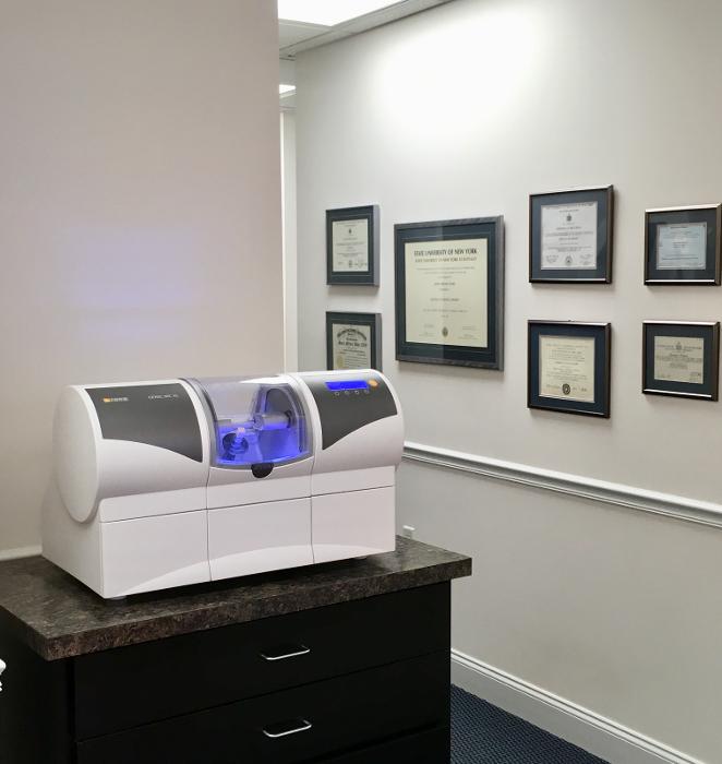 Our CEREC milling machine fabricates your new restoration while you wait, and our dentists will fit and permanently place it during the same appointment.